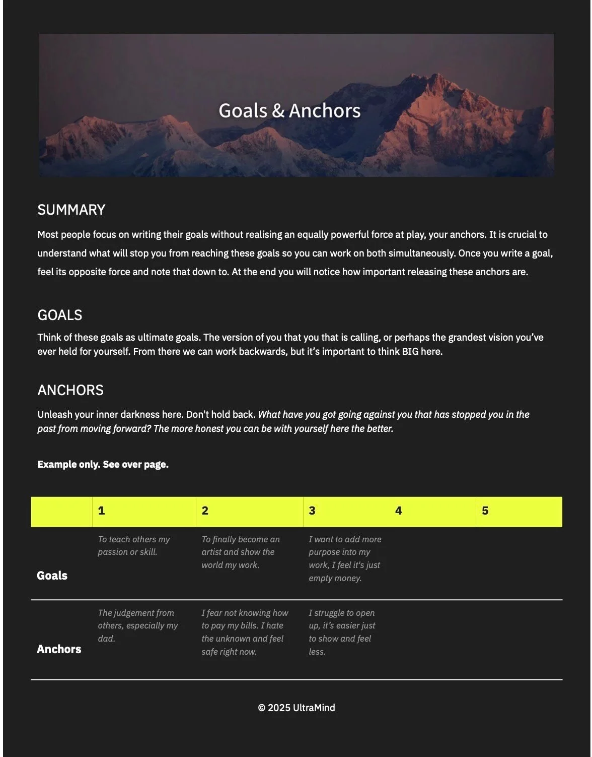 Free Resources Explore your inner world. Goals & Anchors Worksheet Download PDF Simple To-Do List Download PDF Coming Soon Coming Soon